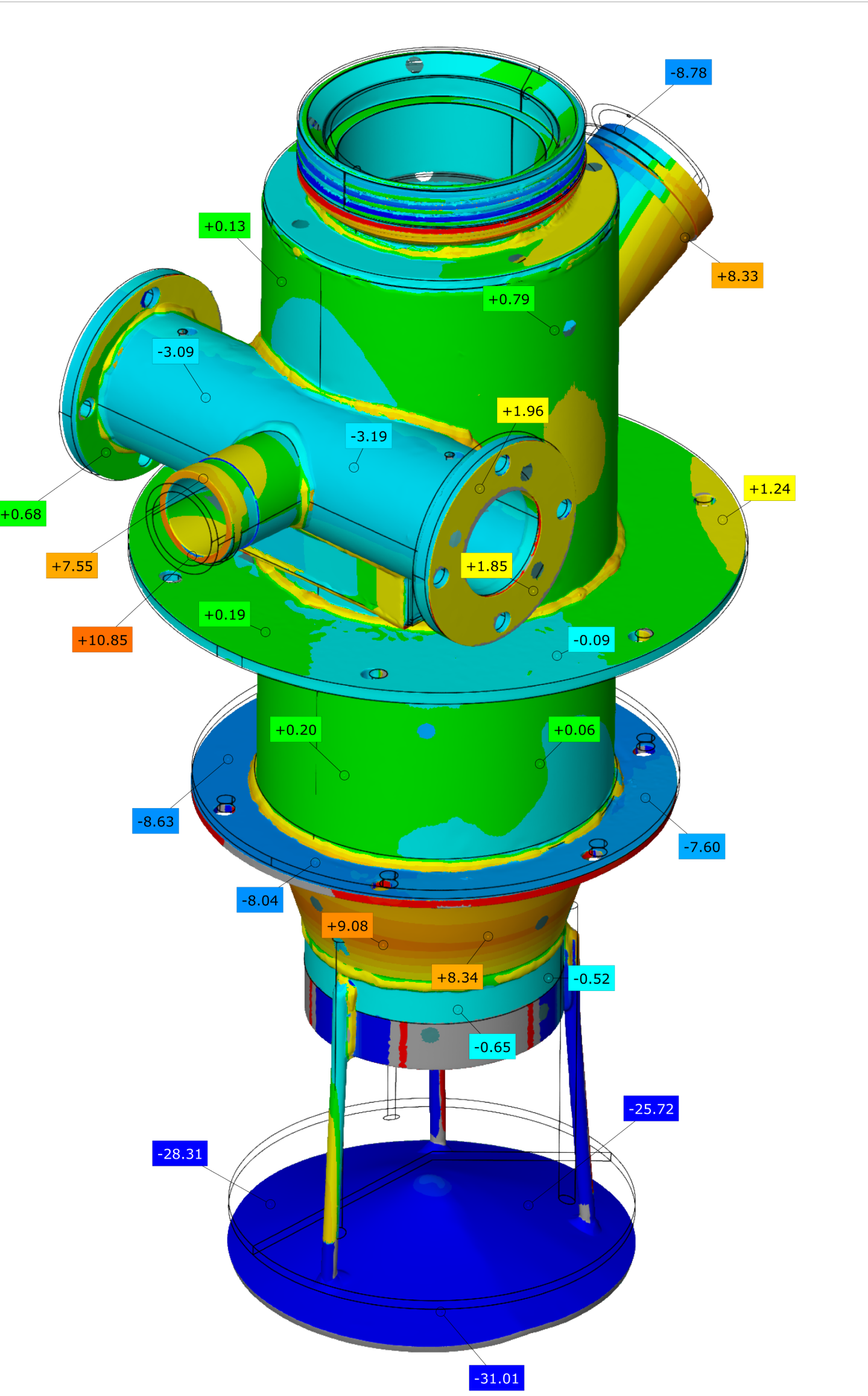 Контроль геометрии - выполнение входного, промежуточного и предэксплуатационного контроля геометрических параметров отсканированных объектов, путем сопоставления их параметров с конструкторской документацией или на основании сравнения с математической моделью (CAD-моделью).